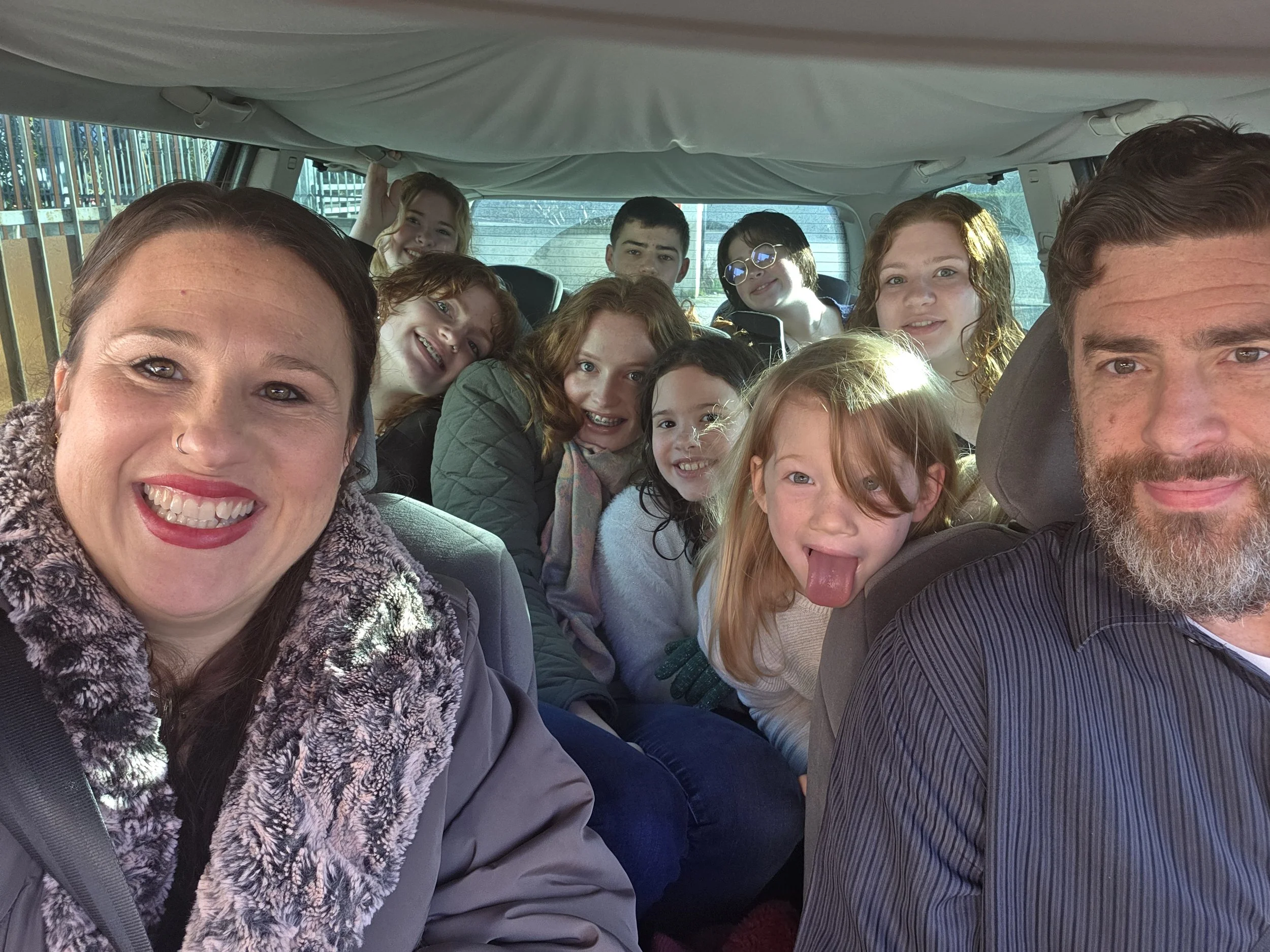 We didn’t all fit into our van but we squished up!